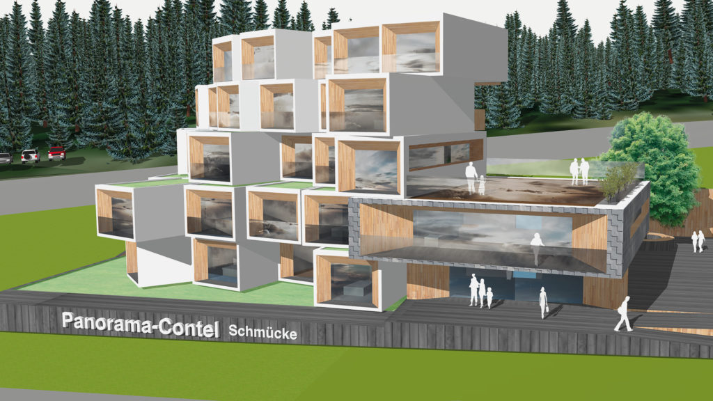 Der Antritt des alten Joel als Pächter der Schmücke wird als „Zeitenwende“ für die Schmücke beschrieben. Geleitet von den Herausforderungen der Zukunft und dennoch anknüpfend an die Ursprünge, entstand ein Konzept, welches eine neue Zeitenwende für diesen eindrucksvollen Ort einleutet. Traditionelle heimische Materialien wie Holz und Schiefer werden in moderner und nachhaltiger Weise verknüpft und ergänzt. So wie Joel rastlos die Schmücke herausputzte, sorgt die modulare Holz-Container-Bauweise dafür, Nachhaltigkeit und fortwährende Entwicklung zu ermöglichen und die Schmücke für die Zukunft fit zu machen.